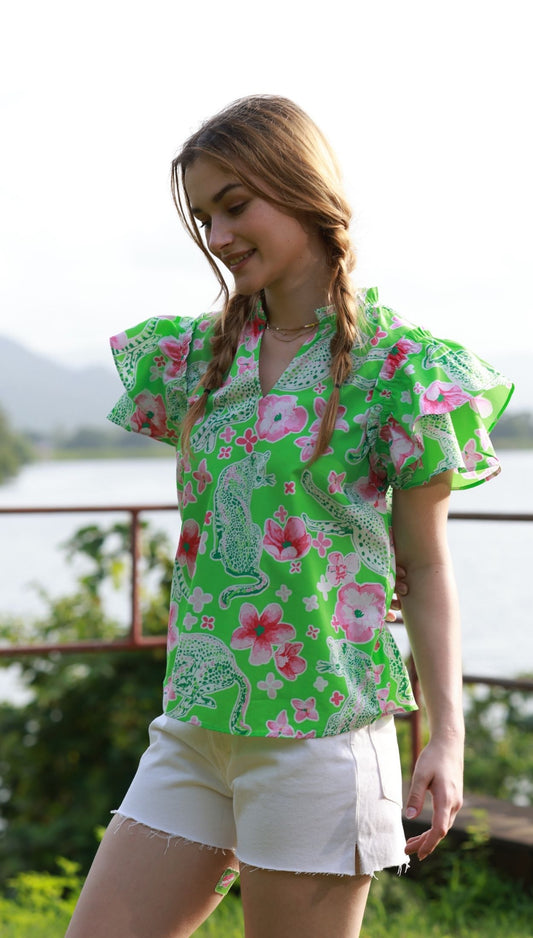 CHEETAH FLORALS WREN Top