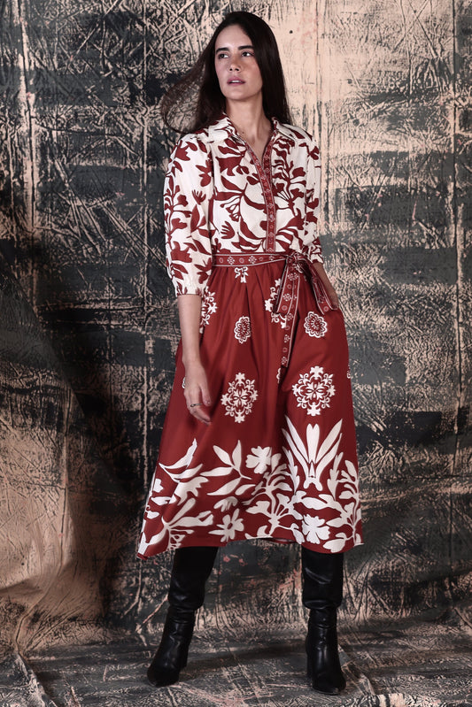 RUST FOLIAGE REMI DRESS
